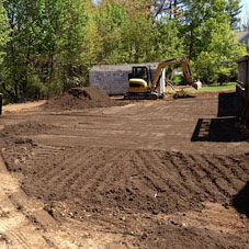 Dump trucks carrying contaminant free, high quality, clean fill top soil which minimizes sinking is delivered and placed on the road. Skid steers or front end loaders are used to transport the soil from the road to the location of the pool. Markstone’s state of the art equipment is used to fill the swimming pool with soil which gets compacted throughout the process to mitigate sinking. Premium top soil is used to fill the last one-foot depth of the pool as well as the entire yard which will promote sod and plant growth.